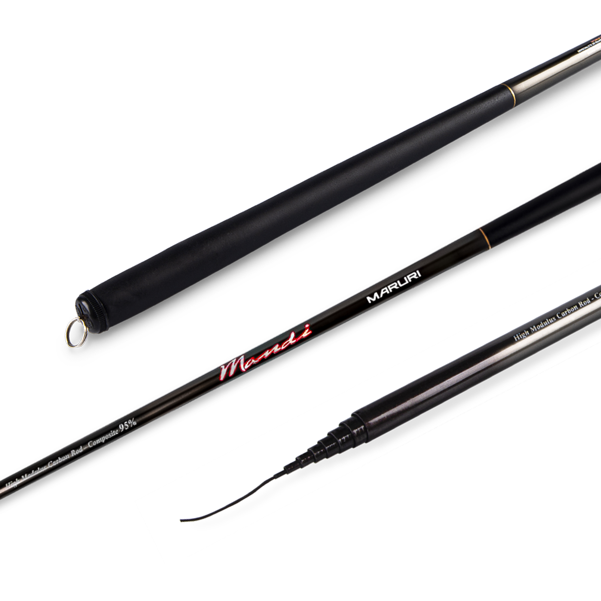 Possui argola salva varas no buttcap e está disponível do tamanho 3m a 7,2m.